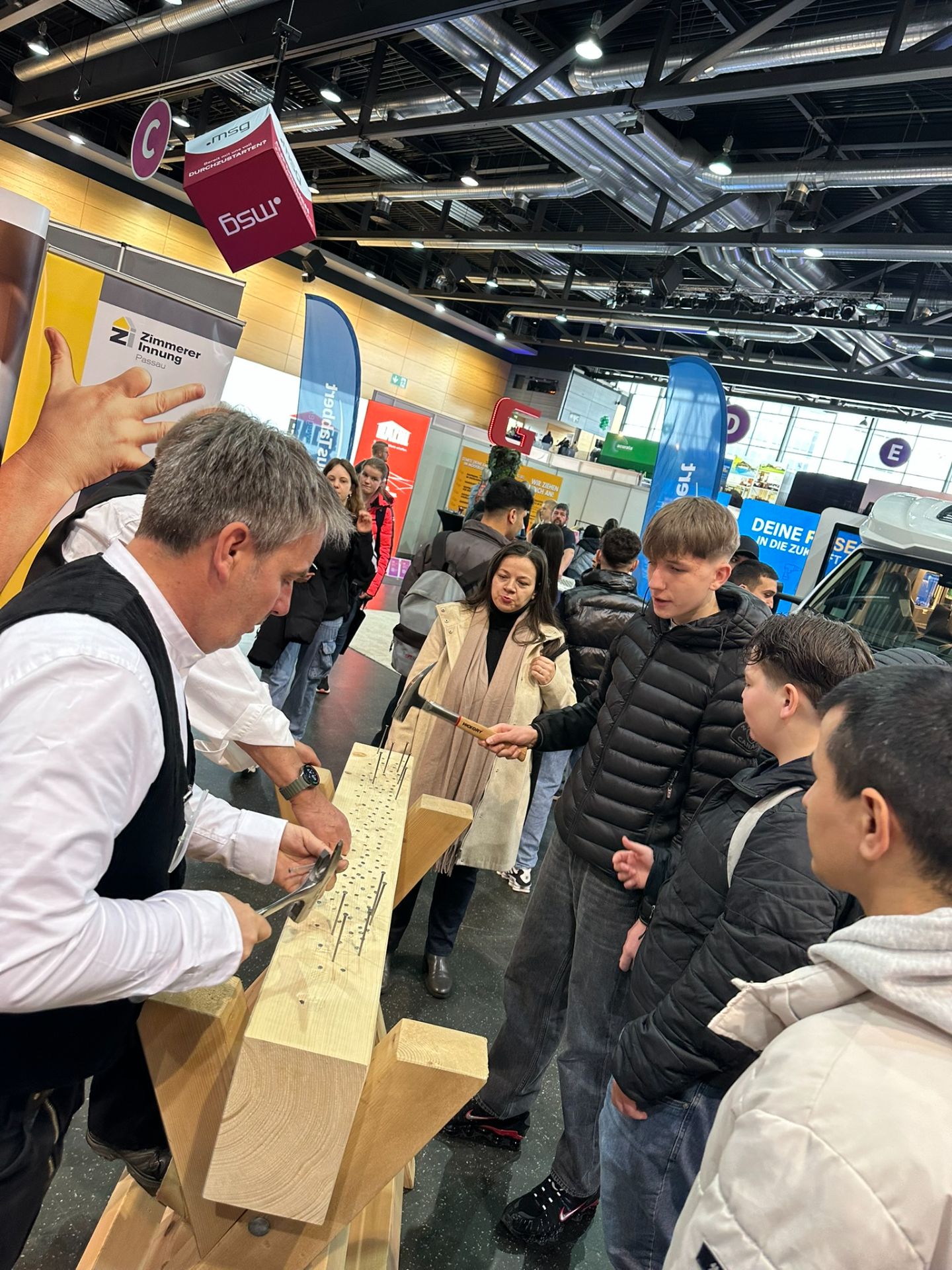 Sowohl in der Dreiländerhalle als auch in der X-Point-Halle warteten auf die Schülerinnen und Schüler zahlreiche Firmen und Schulen, um ihnen diverse Ausbildungsberufe näherzubringen. Man durfte an vielen Ständen auch selbst Hand anlegen, z. B. beim Bäcker Brezen backen, beim Zimmererhandwerk sein Geschick mit dem Hammer beweisen oder auch in einem echten Bagger Aushübe vornehmen. Die Schülerinnen und Schüler zeigten sich beeindruckt ob des Aufwands, welchen die Firmen auf sich nehmen, um neue Auszubildende zu finden. Für viele Besucher war die Ausbildungsmesse äußerst hilfreich, um eine berufliche Perspektive zu bekommen oder auch Ideen für ein künftiges Praktikum zu sammeln.