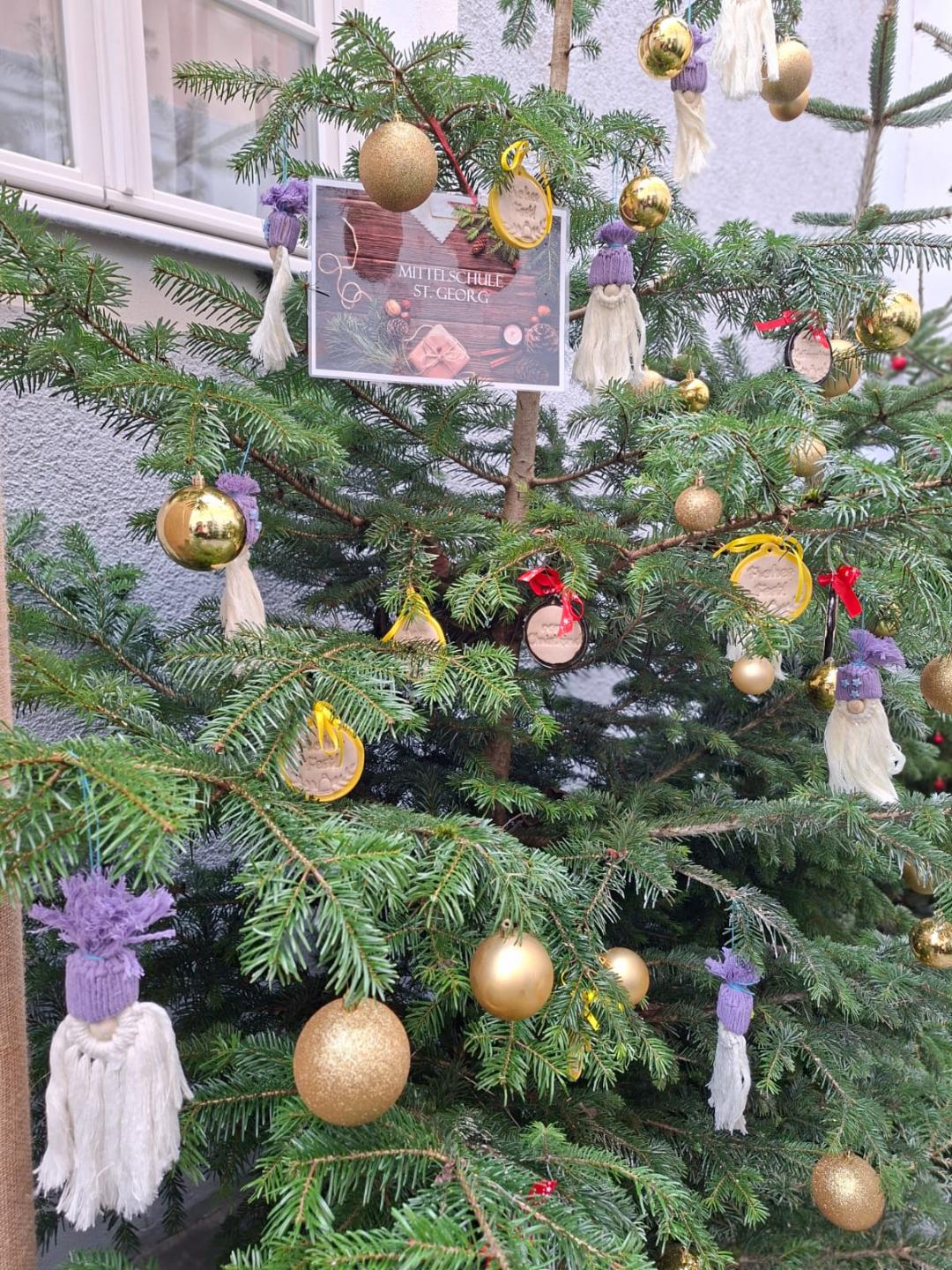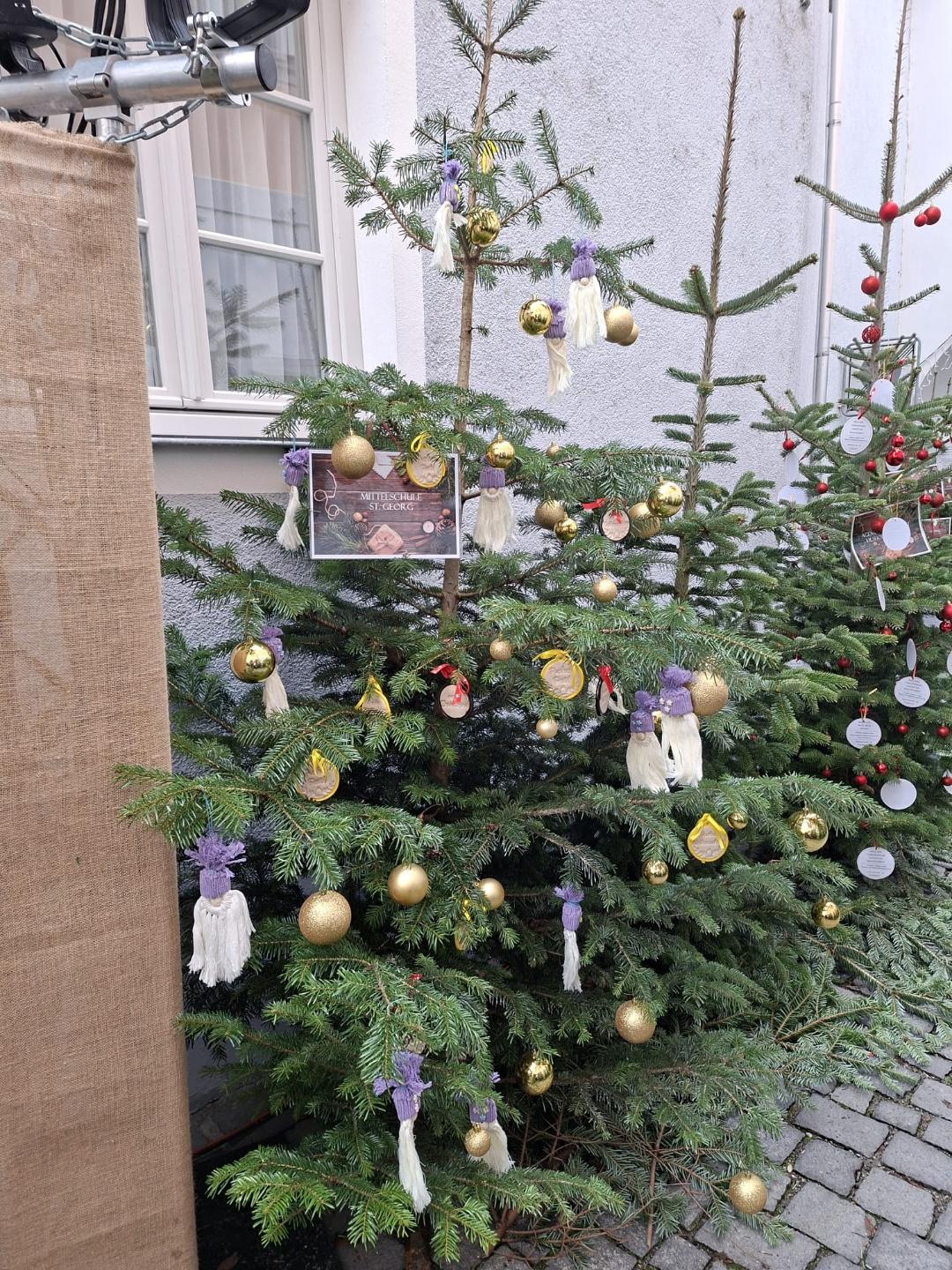 Die fertigen Makramee-Wichtel wurden dann von den Klassen 9M und 9P an den Christbaum in Vilshofen liebevoll aufgehängt, damit diese den Bewohnerinnen und Bewohnern ein Lächeln in der Adventszeit ins Gesicht zaubern können.